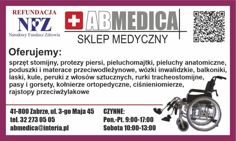 Sklep medyczny AB MEDICA mieści się w Zabrzu przy ulicy 3-go Maja 45.