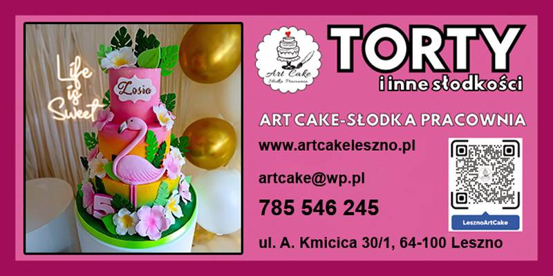 Art Cake – Słodka Pracownia mieści się w Lesznie przy ulicy Andrzeja Kmicica 30/1.