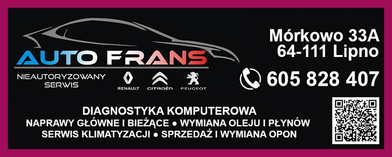 Autoryzowany serwis Auto Frans mieści się pod adresem Mórkowo 33A, w powiecie leszczyńskim.
