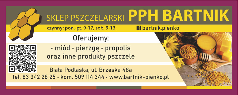 Sklep Pszczelarski  PPH „Bartnik” , zlokalizowany przy ul. Brzeskiej 48A w Białej Podlaskiej, to renomowane miejsce dla pszczelarzy i miłośników produktów pszczelich. Działa nieprzerwanie od 2004 roku jako rodzinna firma, prowadzona przez Jarosława Pieńko – pasjonata pszczelarstwa z wykształceniem zdobytym w Technikum Pszczelarskim w Pszczelej Woli.