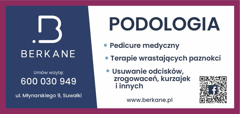 Gabinet BERKANE Podologia mieści się w Suwałkach przy ulicy Młynarskiego 9.
