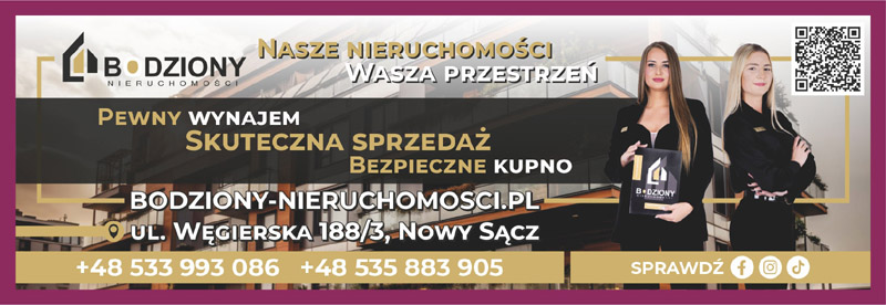 BODZIONY Nieruchomości to innowacyjna firma, działająca i prężnie rozwijająca się na nowosądeckim rynku nieruchomości zapewniająca kompleksową i nowoczesną współpracę przy sprzedaży, zakupie czy wynajmie gruntów, domów, mieszkań lub lokali użytkowych.
