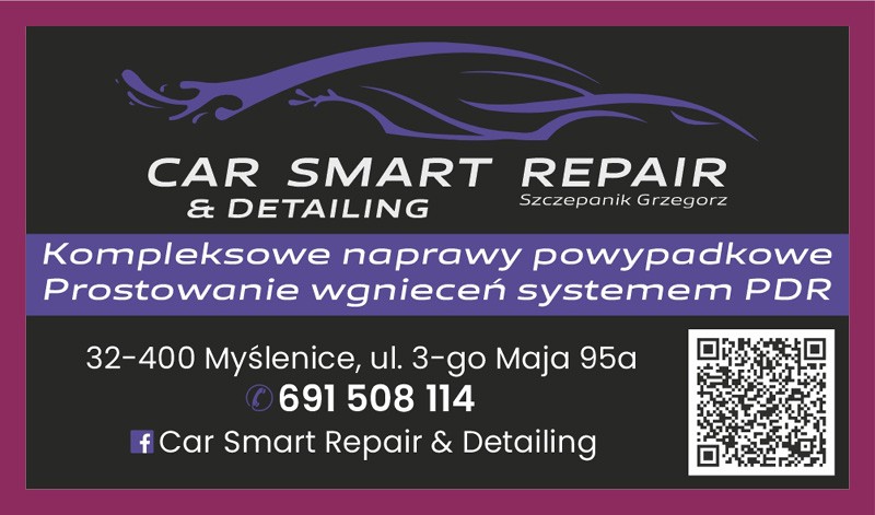 Warsztat Car Smart Repair & Detailing mieści się w Myślenicach przy ulicy 3-go Maja 95a. Oferujemy kompleksowe naprawy powypadkowe. Wykonujemy prostowanie wgnieceń systemem PDR. Świadczymy jak usługi detailingu samochodowego. Zapraszamy!