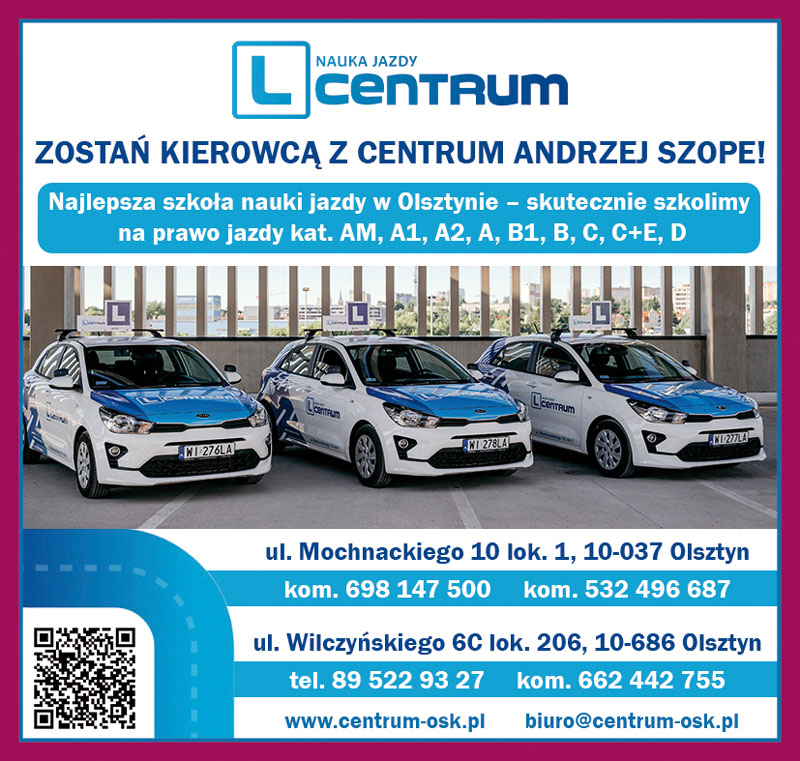 Centrum Andrzej Szope to nowoczesny ośrodek szkolenia kierowców z wieloletnim doświadczeniem. Oferujemy kursy prawa jazdy kategorii B, C, C+E i D w Olsztynie i regionie. Nasz zespół składa się z wykwalifikowanych, cierpliwych instruktorów, a nowoczesna flota pojazdów zapewnia komfort i bezpieczeństwo nauki. Posiadamy własny nowoczesny plac manewrowy oraz duże przestronne sale wykładowe. Dzięki wysokiej zdawalności i indywidualnemu podejściu do kursantów zdobyliśmy zaufanie setek przyszłych kierowców. Stawiamy na jakość, skuteczność i miłą atmosferę nauki.