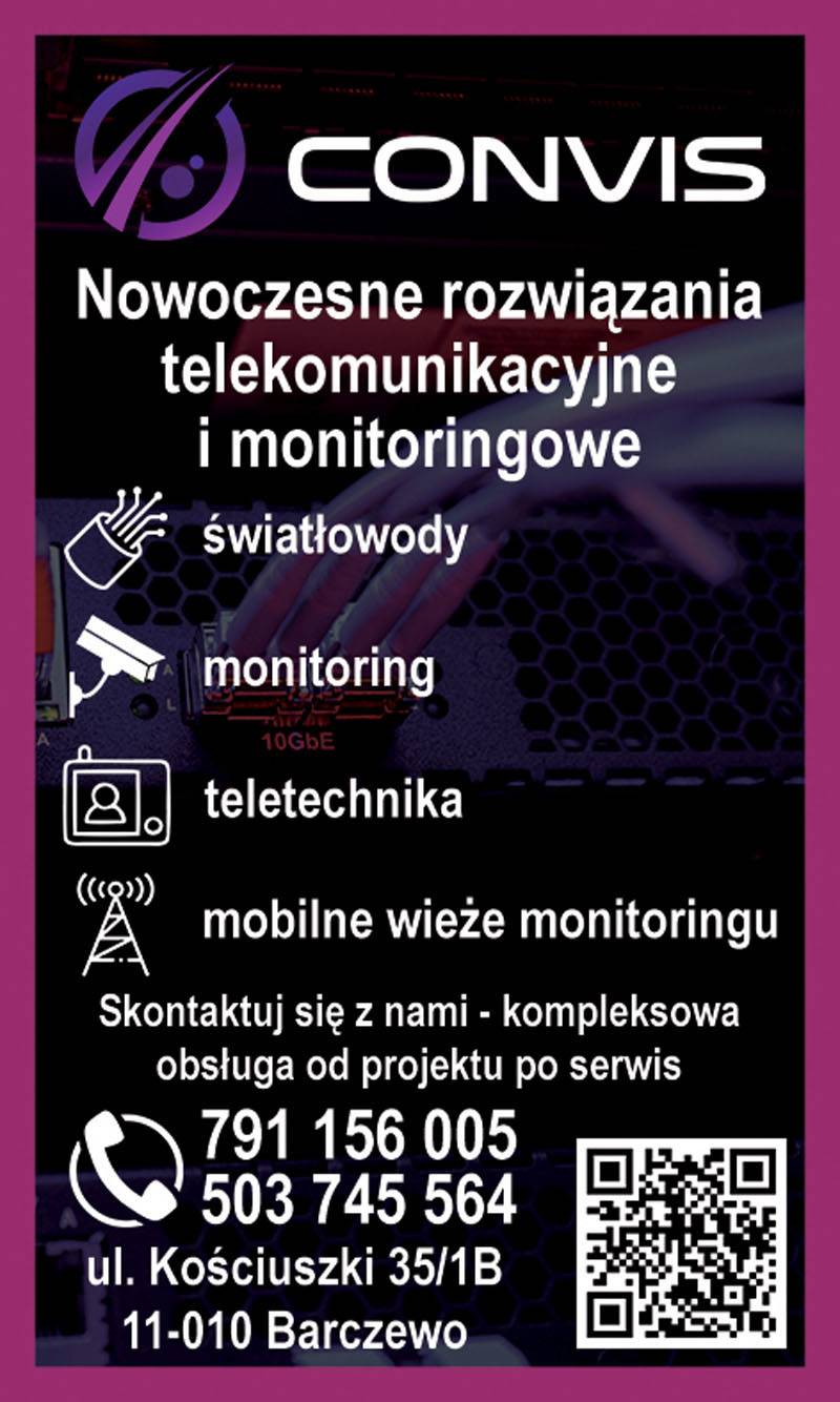 Convis to dynamicznie rozwijająca się firma działająca w branży teletechnicznej. Specjalizujemy się w projektowaniu, budowie i serwisie sieci światłowodowych, systemów monitoringu wizyjnego oraz instalacji teletechnicznych dla firm i instytucji. Łączymy doświadczenie z najnowszymi technologiami, oferując kompleksowe rozwiązania – od doradztwa i projektu, przez montaż, po wsparcie techniczne i serwis. Naszym celem jest zapewnienie niezawodnej infrastruktury oraz bezpieczeństwa użytkowników przy zachowaniu wysokich standardów jakości i terminowości.