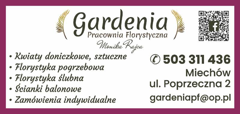 Pracownia Florystyczna Gardenia mieści się w Miechowie przy ulicy Poprzecznej 2.