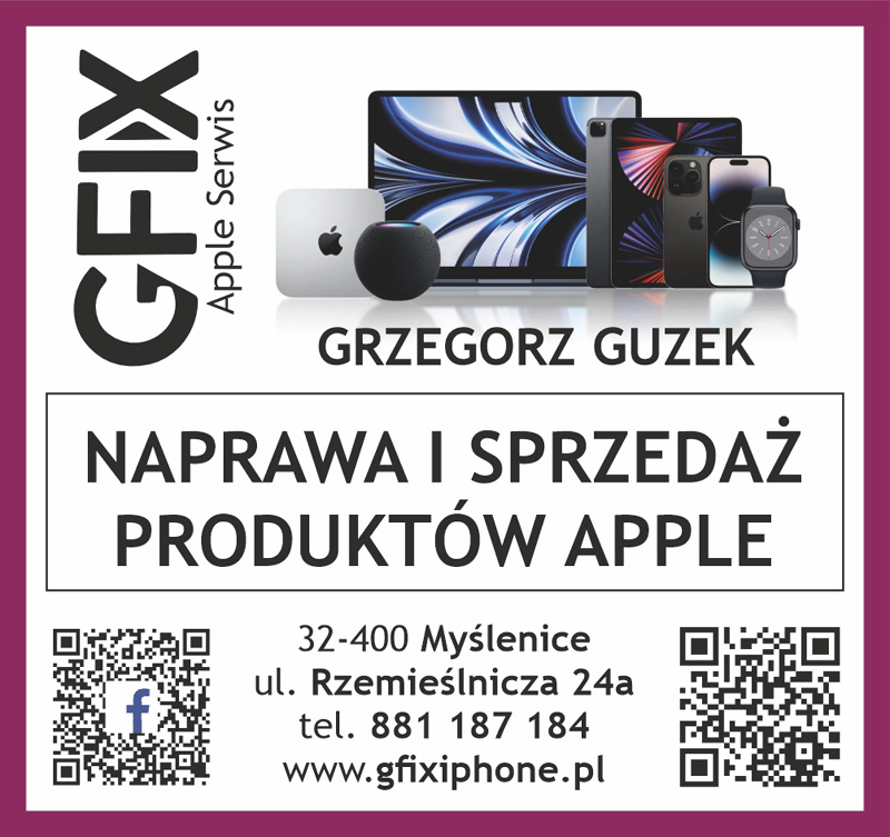GFIX Apple Serwis w Myślenicach mieści się przy ulicy Rzemieślniczej 24a. Zajmuje się naprawą i sprzedażą produktów Apple.