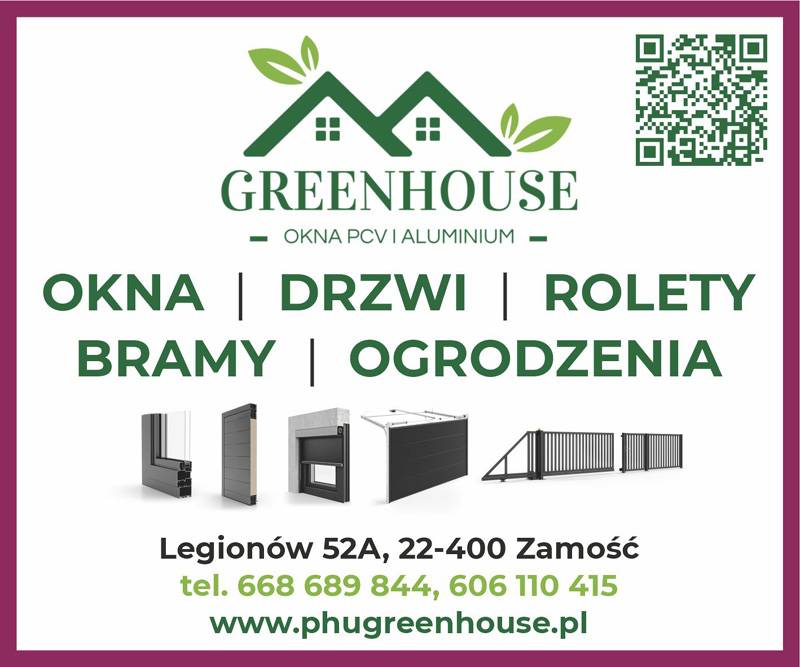 Green House z Zamościa to lider stolarki otworowej w województwie lubelskim. Oferujemy nowoczesne okna, drzwi i bramy, dopasowane do Twoich potrzeb. Dzięki naszemu doświadczeniu gwarantujemy fachowe doradztwo i najwyższą jakość produktów. Postaw na sprawdzone rozwiązania z Twojego regionu!
