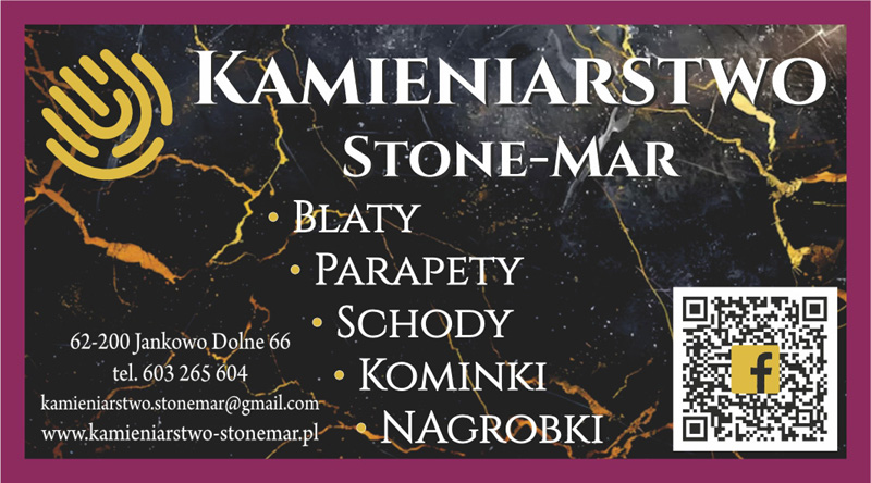 Kamieniarstwo STONE-MAR mieści się pod adresem Jankowo Dolne 66, w powiecie gnieźnieńskim.