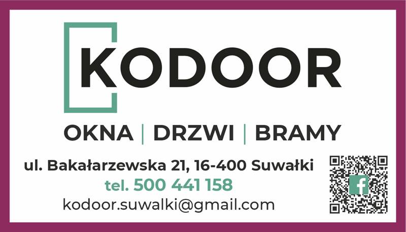 Firma KoDoor mieści się w Suwałkach przy ulicy Bakałarzewskiej 21. Oferujemy Państwu okna, drzwi, bramy. Zapewniamy pomiar, montaż, doradztwo. Zapraszamy!