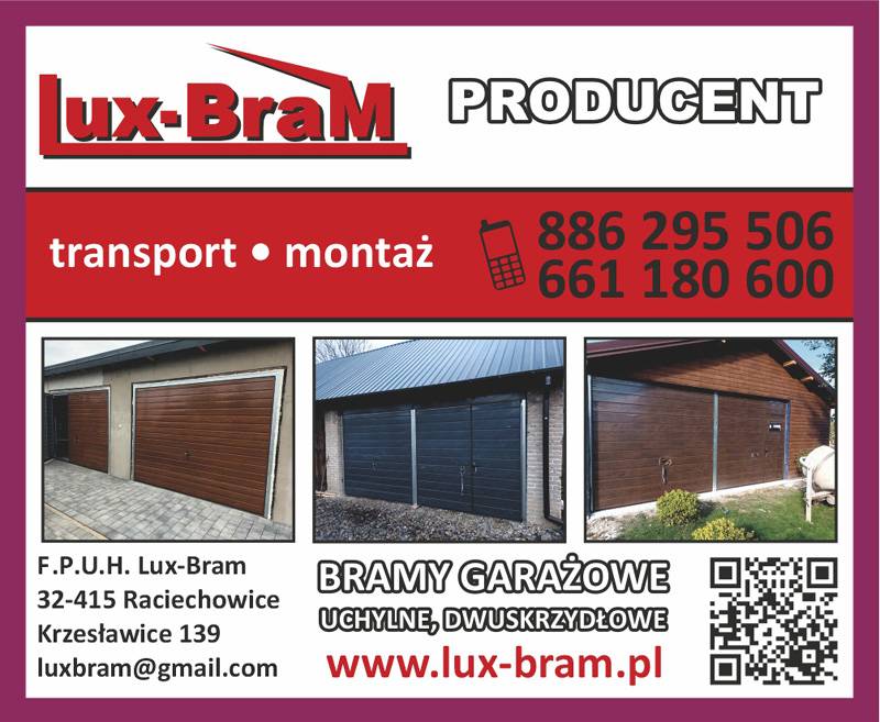 Firma Lux-Bram ma siedzibę w Krzesławicach. Jesteśmy producentem bram garażowych uchylnych, dwuskrzydłowych. Zapewniamy transport oraz montaż. Zapraszamy do kontaktu.