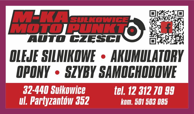 Sklep motoryzacyjny M -ka mieści się w Sułkowicach przy ulicy Partyzantów 352. W ofercie: oleje silnikowe, akumulatory, opony, szyby samochodowe. Zapraszamy.