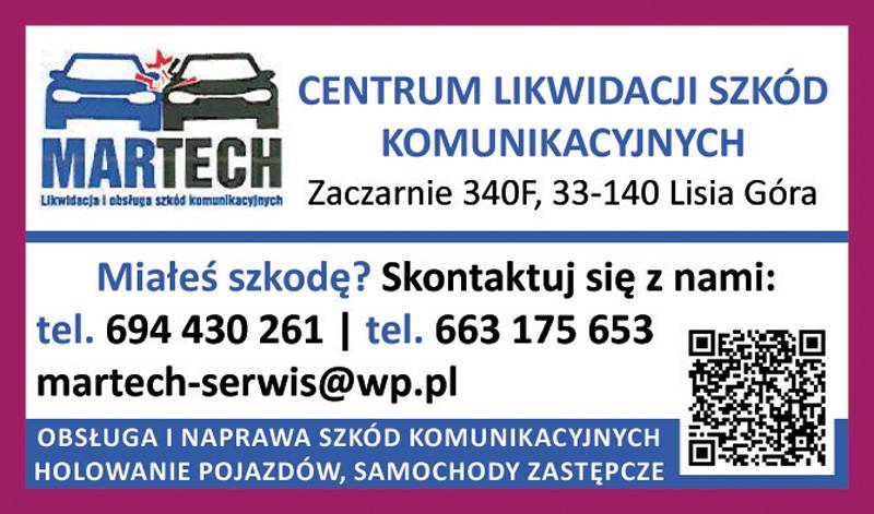Centrum Likwidacji Szkód Komunikacyjnych MARTECH mieści się pod adresem Zaczarnie 340 F, w powiecie tarnowskim. Miałeś szkodę? Skontaktuj się z nami! Zapewniamy obsługę i naprawę szkód komunikacyjnych, holowanie pojazdów, samochody zastępcze.