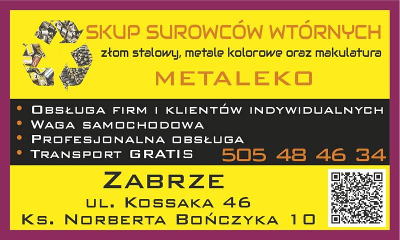 Skup surowców wtórnych, złomu stalowego, metali kolorowych oraz makulatury METALEKO.