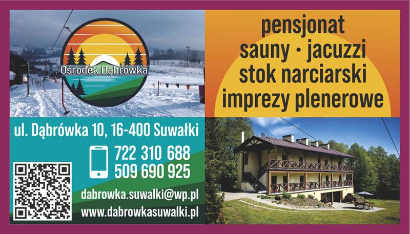 Ośrodek Dąbrówka mieści się w Suwałkach w otulinie Wigierskiego Parku Narodowego nad jeziorem Dąbrówka. Znajdziecie u nas spokój i ciszę latem oraz szaloną zabawę na stoku narciarskim zimą.