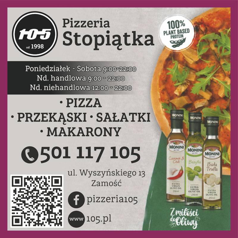 Pizzeria Stopiątka w Zamościu mieści się przy ulicy Wyszyńskiego 13.