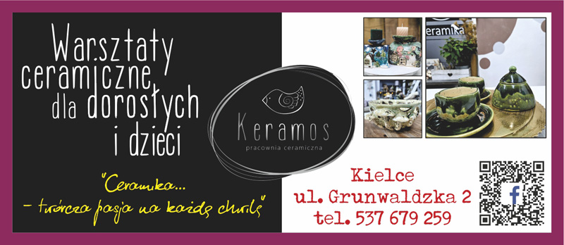 Pracownia Ceramiki Keramos w Kielcach prowadzi kreatywne warsztaty z ceramiki dla dorosłych i dzieci. W pracowni ceramiki pomagamy każdemu odkryć w sobie artystę. Nie ma znaczenia, czy trzymasz glinę w dłoniach po raz pierwszy, czy masz już doświadczenie- liczy się proces twórczy, radość tworzenia i satysfakcja z własnoręcznie wykonanej pracy, ze swojego małego dzieła sztuki. Tworząc ceramikę zwalniasz tempo, zanurzasz się w chwili i doświadczasz magii, która dzieje się na twoich oczach. Ceramika to coś więcej niż rzemiosło – to sposób na wyrażenie siebie. Tu nie ma miejsca na błędy, bo każda niedoskonałość dodaje uroku i charakteru. To niezwykłe uczucie , gdy z kawałka surowej masy powoli wyłania się miska, kubek, figurka czy ozdobna płaskorzeźba. Pracownia Ceramiki Keramos zaprasza od wtorku do piątku w godz.: 15:00 – 20.00. Zadzwoń i umów się na warsztaty.