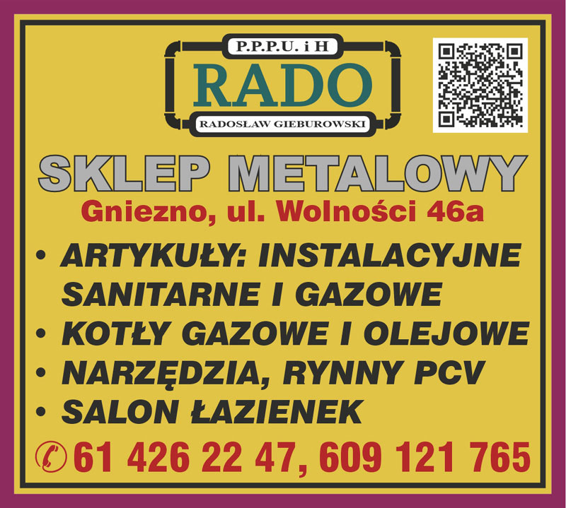 Sklep Metalowy RADO Radosław Gieburowski mieści się w Gnieźnie przy ulicy Wolności 46a.
