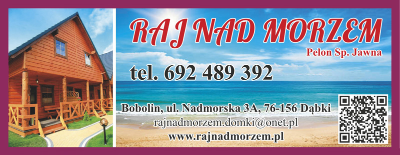 Domki letniskowe Raj Nad Morzem mieszczą się w Bobolinie, w gminie Dąbki przy ulicy Nadmorskiej 3A. Zapraszamy!