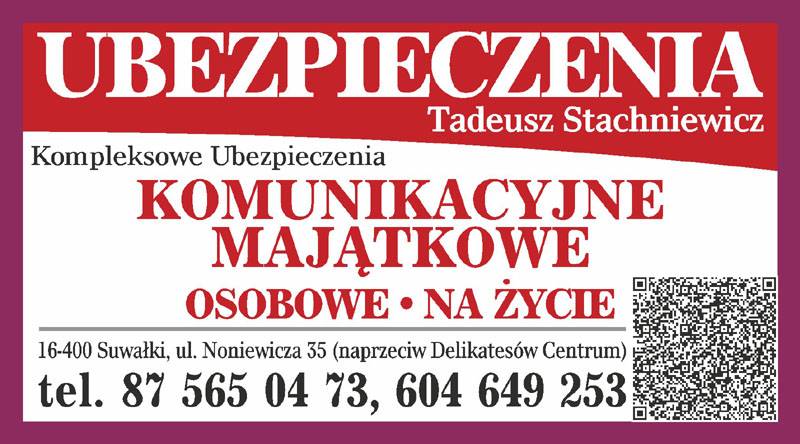 Agencja ubezpieczeniowa STACH Tadeusz Stachniewicz mieści się w Suwałkach przy ulicy Noniewicza 35.