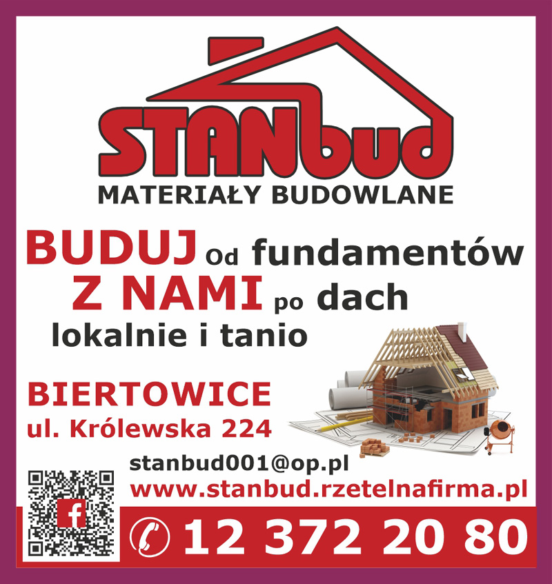 Skład materiałów budowlanych STANBUD mieści się w Biertowicach przy ulicy Królewskiej 224. U nas znajdziesz wszelkie potrzebne materiały budowlane lokalnie i tanio. Buduj z nami od fundamentów po dach. Zapraszamy!