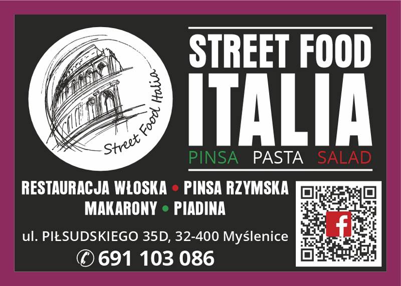 Włoska restauracja STREET FOOD ITALIA mieści się w Myślenicach przy ulicy Piłsudskiego 35D. W ofercie: pinsa rzymska, makarony, piadina. Zapraszamy!
