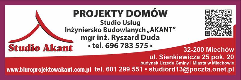 Studio Usług Inżyniersko Budowlanych „AKANT” mieści się w Miechowie przy ulicy Sienkiewicza 25 pok. 20.