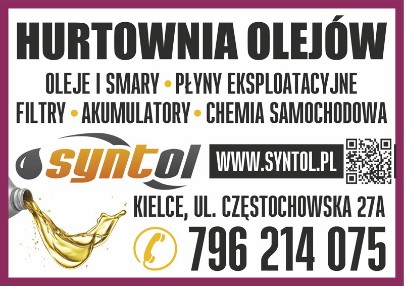 Hurtownia Olejów SYNTOL mieści się w Kielcach przy ulicy Częstochowskiej 27a.