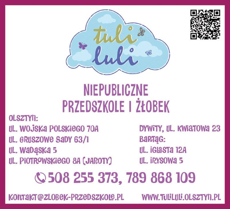 Tuli Luli to sieć prywatnych żłobków i przedszkoli w Olsztynie i Bartągu, oferująca kompleksową opiekę nad dziećmi w wieku od 1 do 6 lat.