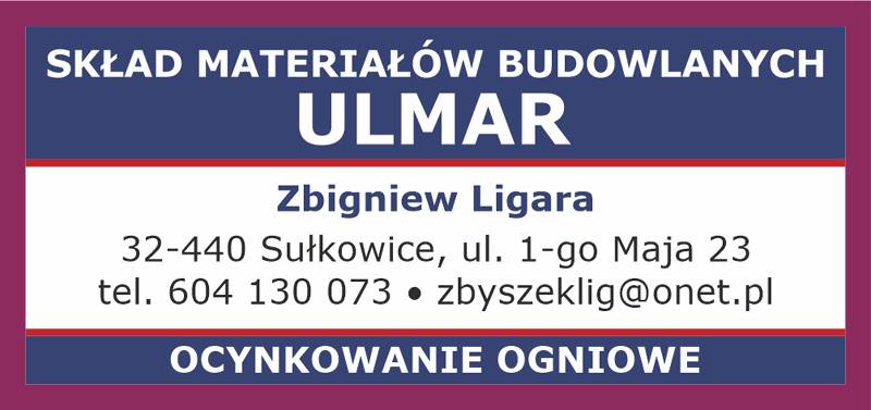 Skład materiałów budowlanych ULMAR mieści się w Sułkowicach przy ulicy 1-go Maja 23. Zapraszamy!