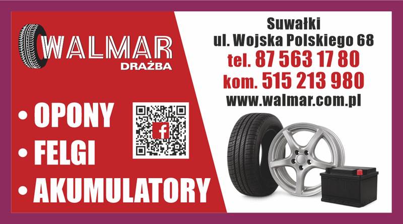 Walmar-Drażba sp. j. z siedzibą w Suwałkach jest firmą handlowo – usługową. Od ponad 35 lat oferujemy przede wszystkim opony, felgi i akumulatory. Zapewniamy profesjonalne doradztwo doboru ogumienia typowego i specjalnego oraz wszelkiego rodzaju felg i akumulatorów.